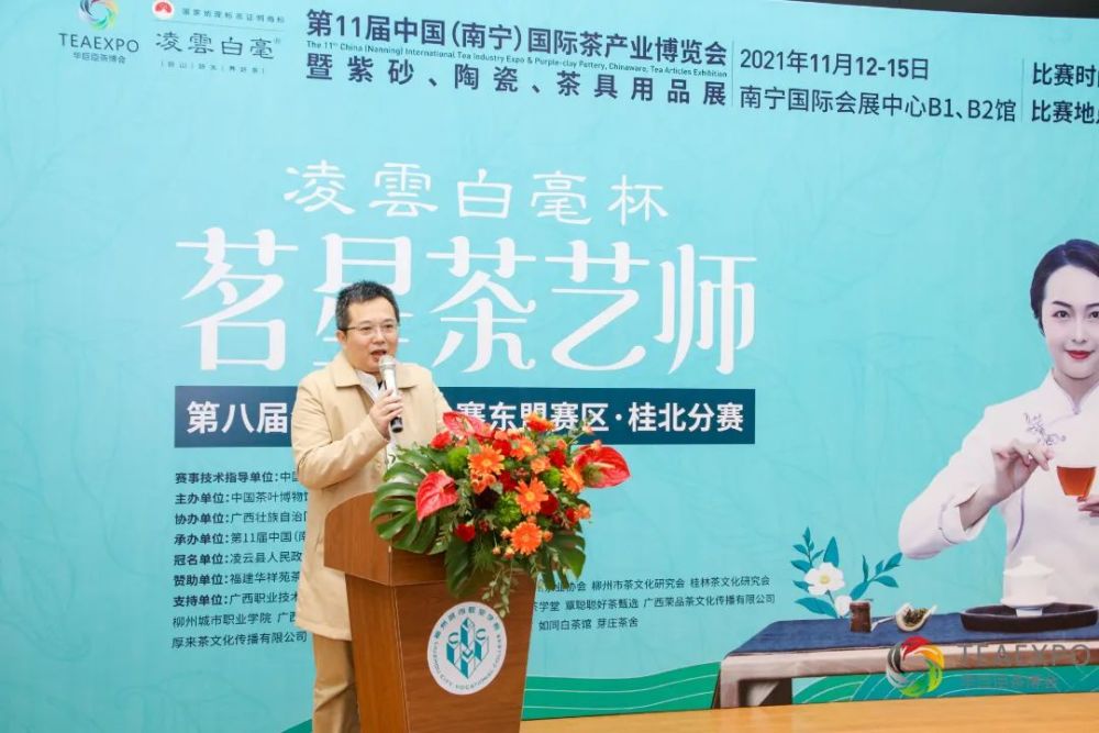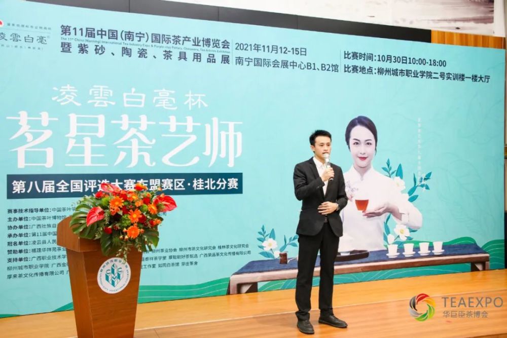 出席桂北分赛的嘉宾有:柳州城市职业学院经济管理系主任、学院茶文化研究学会会长李谦,华巨臣南宁茶博会项目负责人饶紫鹃,华巨臣茶博会南宁茶博会活动负责人陈春正